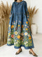 Women's Floral Art Print Peter Pan Collar Long-sleeved Loose Casual Denim Dress