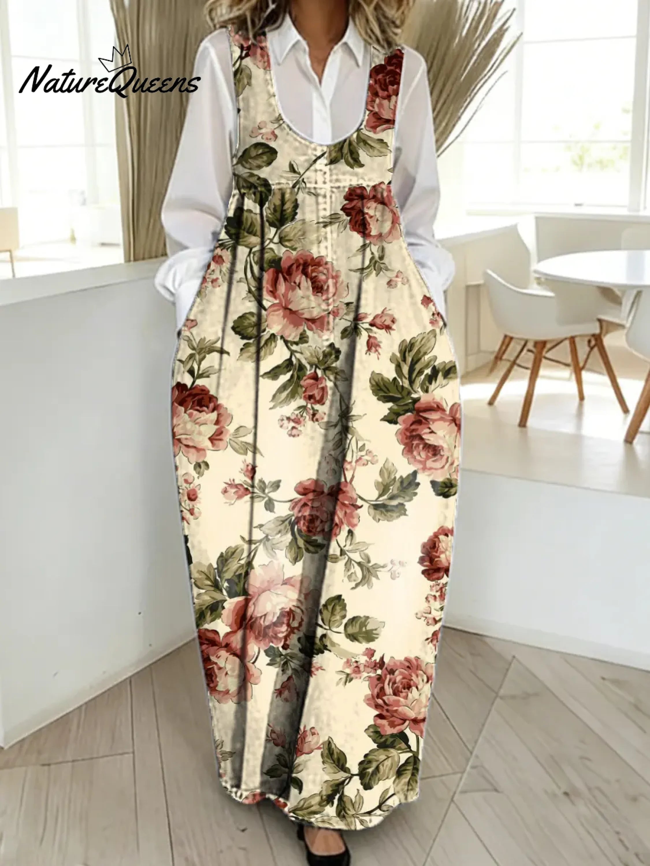Women's Floral Pattern Art Print Casual Cotton Denim Dress
