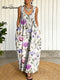 Women's Floral Pattern Art Print Casual Cotton Denim Dress