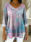 Women's Geometry Color Splicing Gradient Art Casual Washed Denim Cotton Top