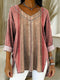 Women's Geometry Color Splicing Gradient Art Casual Washed Denim Cotton Top