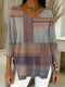 Women's Retro Geometric Art Print Casual Washed Denim Cotton Top