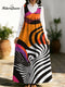 Women's Retro Geometry Colorful Square Pattern Art Print Casual Cotton Denim Dress