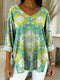 Women's Retro Gradient Ethnic Art Patterns Casual Washed Denim Cotton Top