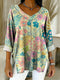 Women's Retro Gradient Ethnic Art Patterns Casual Washed Denim Cotton Top