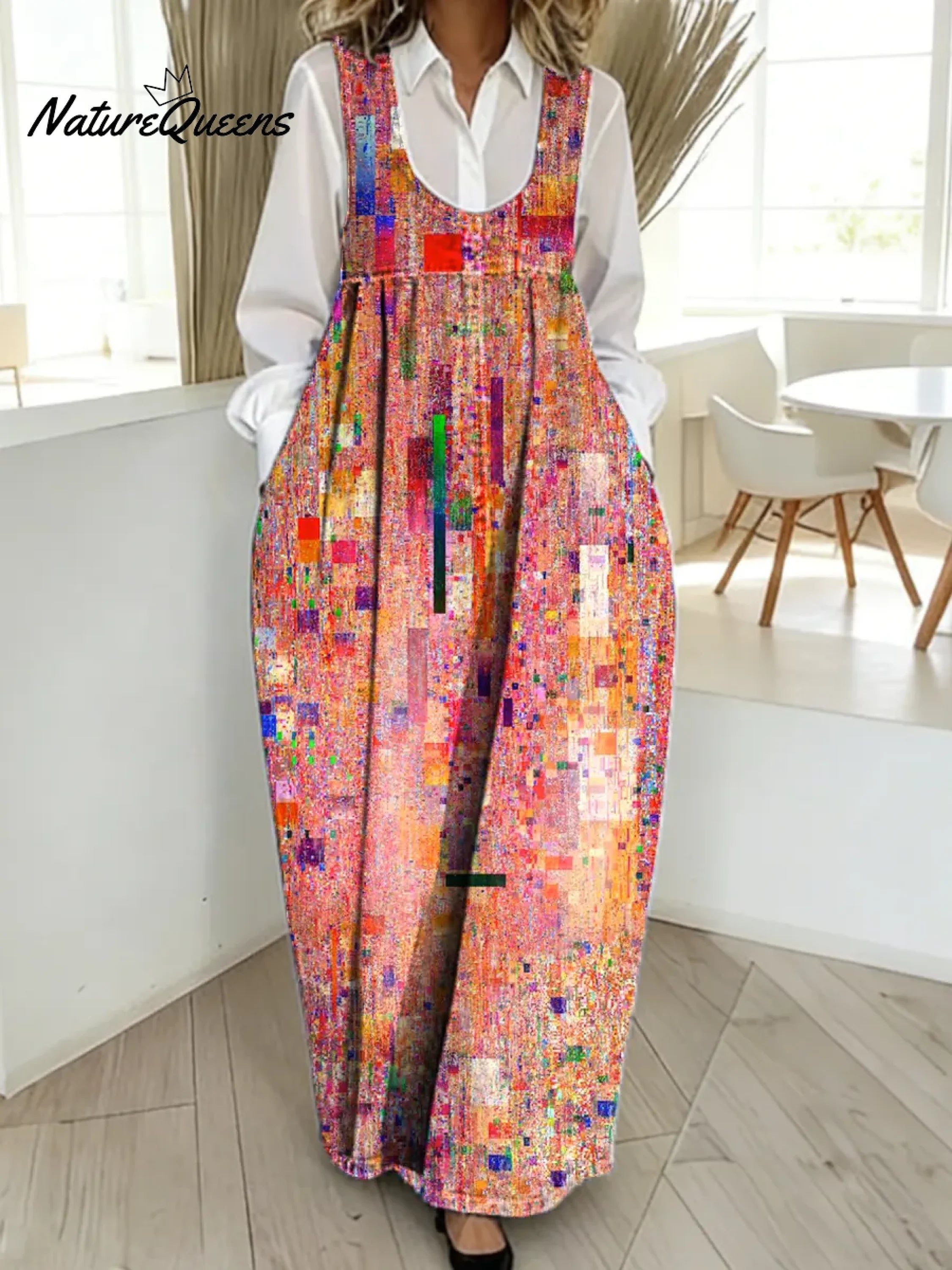 Women's Retro Multicolor Art Print Casual Cotton Denim Dress