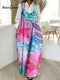Women's Retro Splicing Colorful Flowers Pattern Art Print Casual Cotton Denim DressWomen's Retro Splicing Colorful Flowers Pattern Art Print Casual Cotton Denim Dress