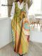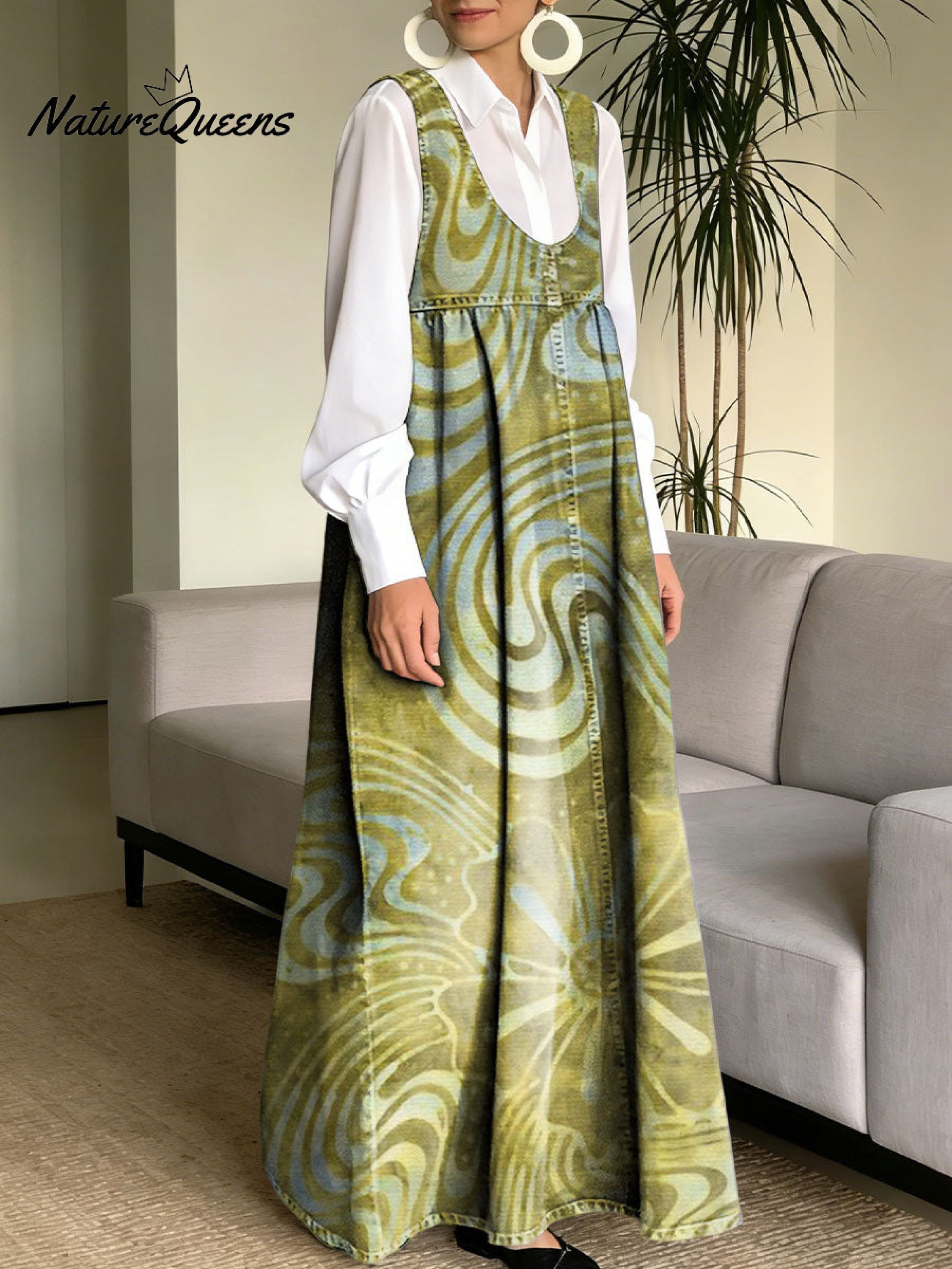 Women's Retro Splicing Colorful Flowers Pattern Art Print Casual Cotton Denim Dress