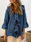 Women's Ruffled V-neck 3/4 Sleeve Casual Loose Denim Top