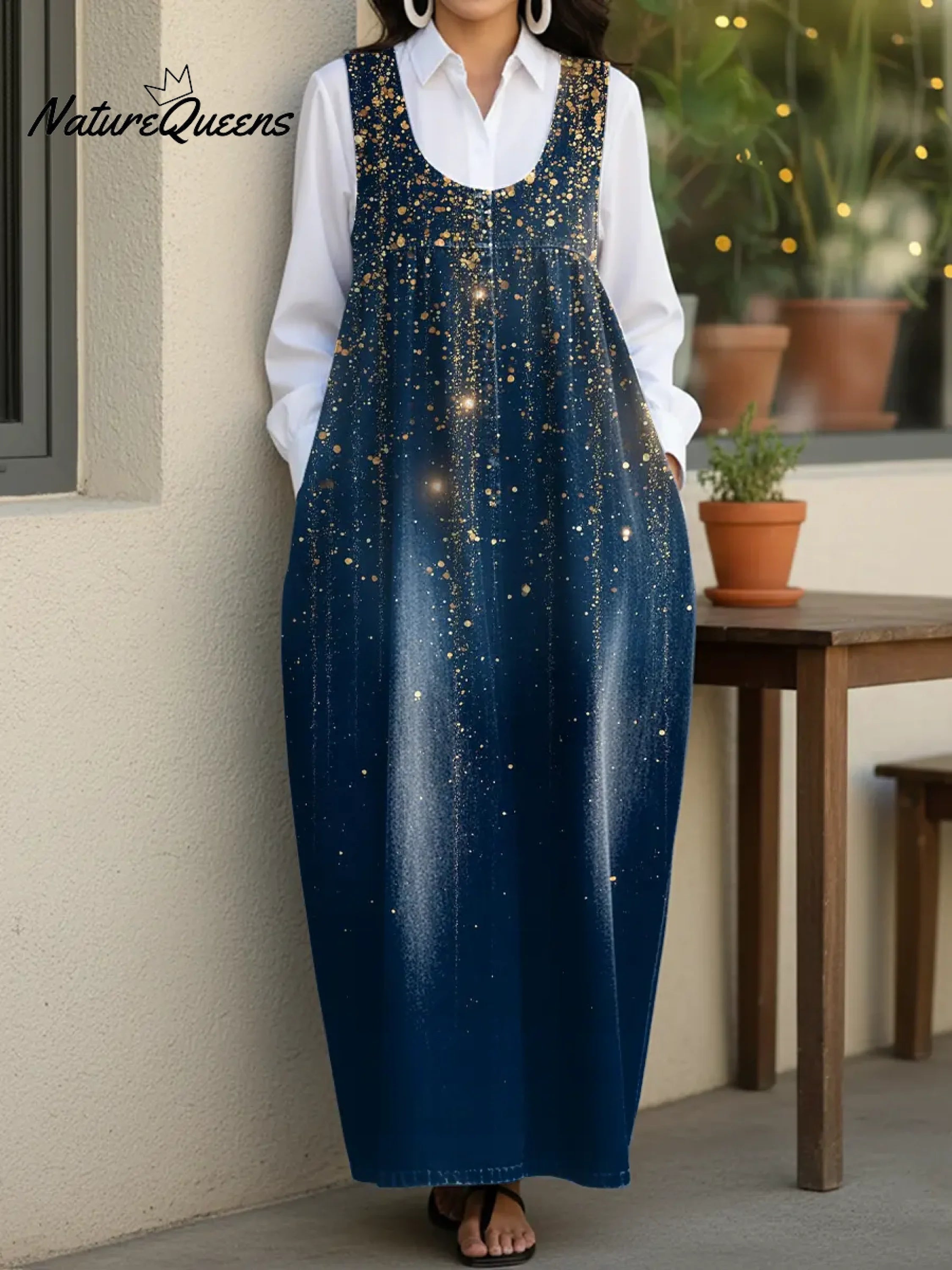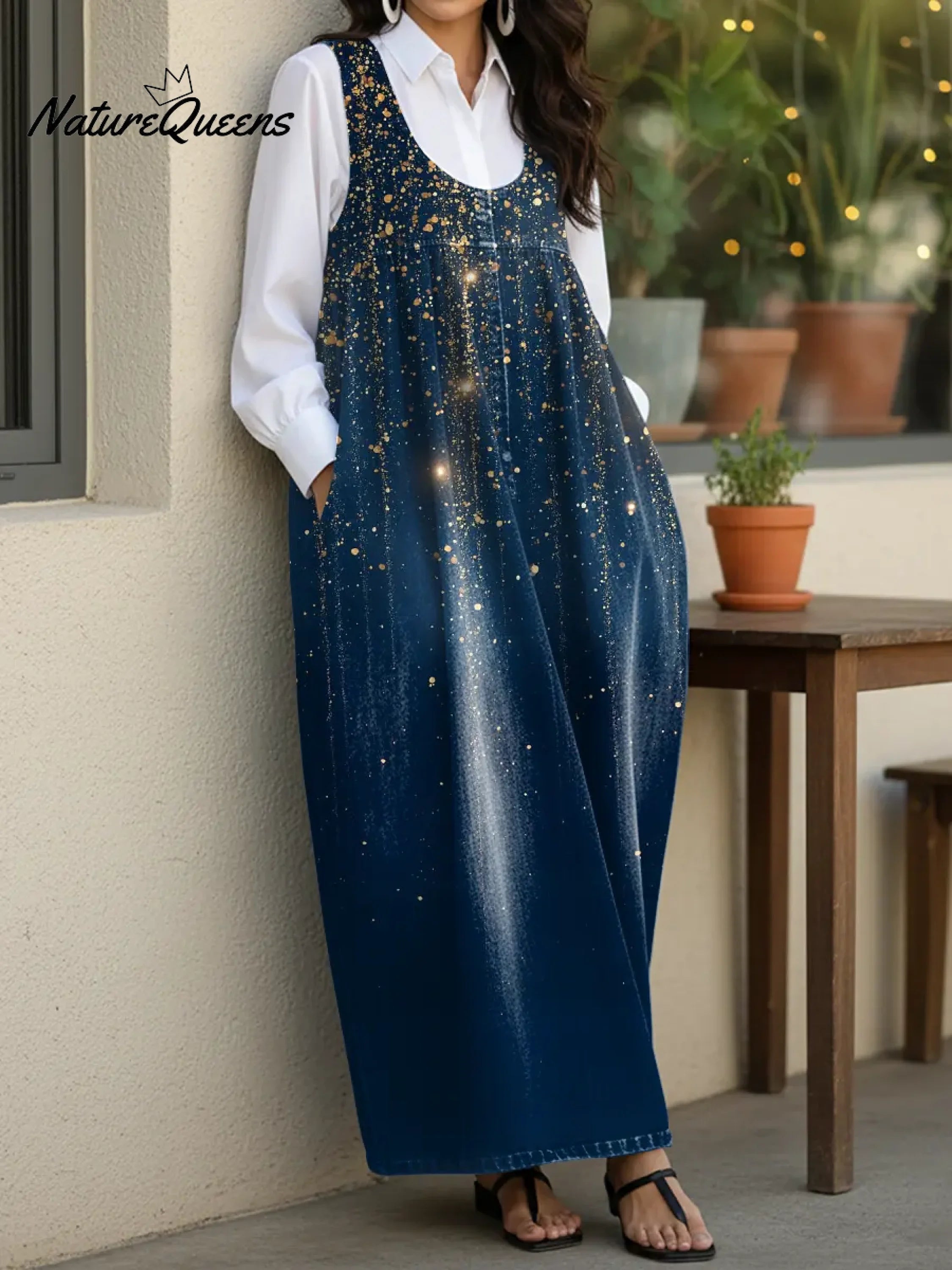 Women's Shiny Stripe Casual Loose Denim Vest Dress