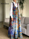Women's Simple Flowers Pattern Art Print Casual Cotton Denim Dress