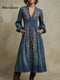 Women's Simple Flowers Pattern Art Print Casual Cotton Denim Dress