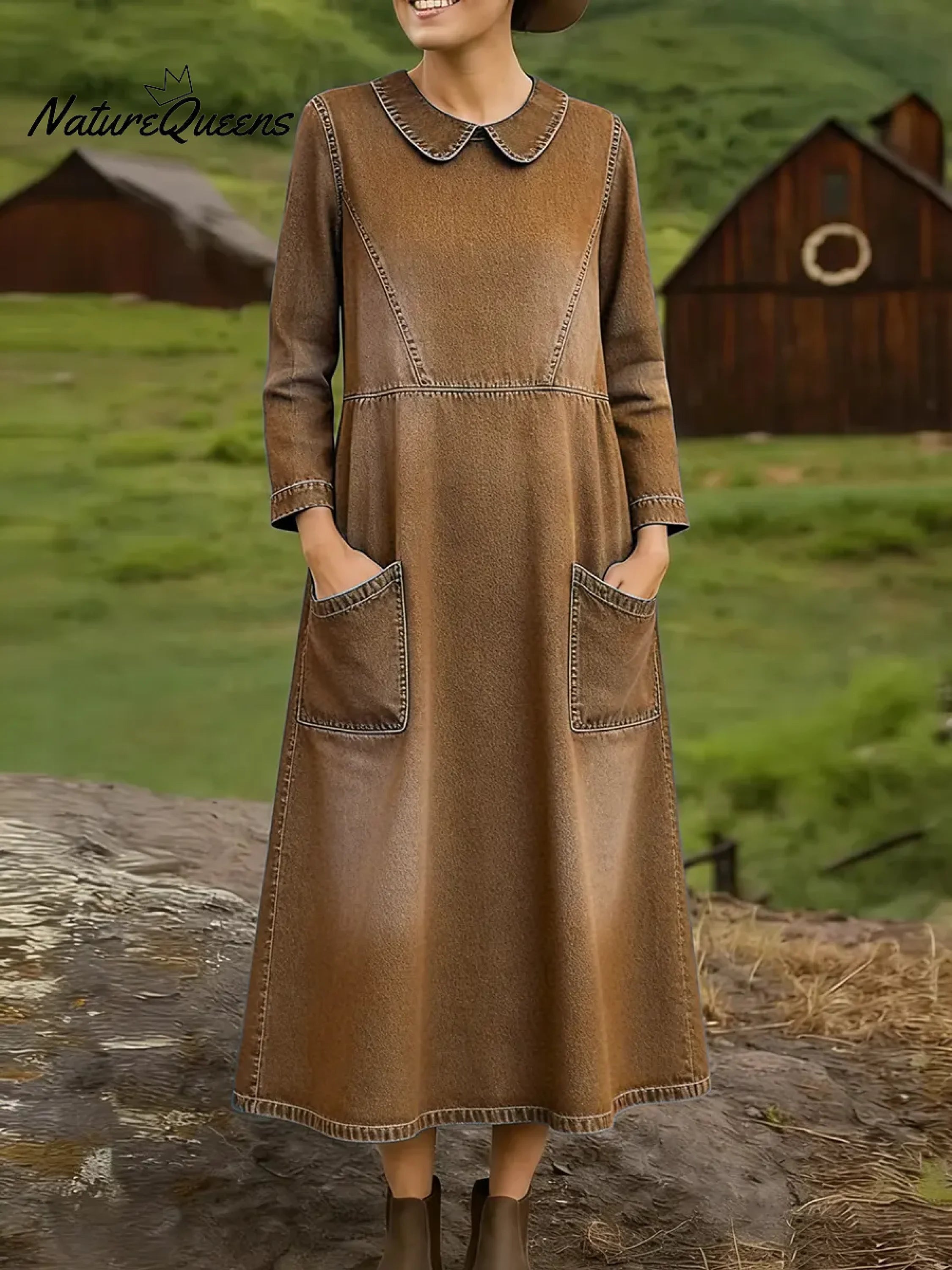 Women's Spring Peter Pan Collar Long-sleeved Casual Loose Denim Dress
