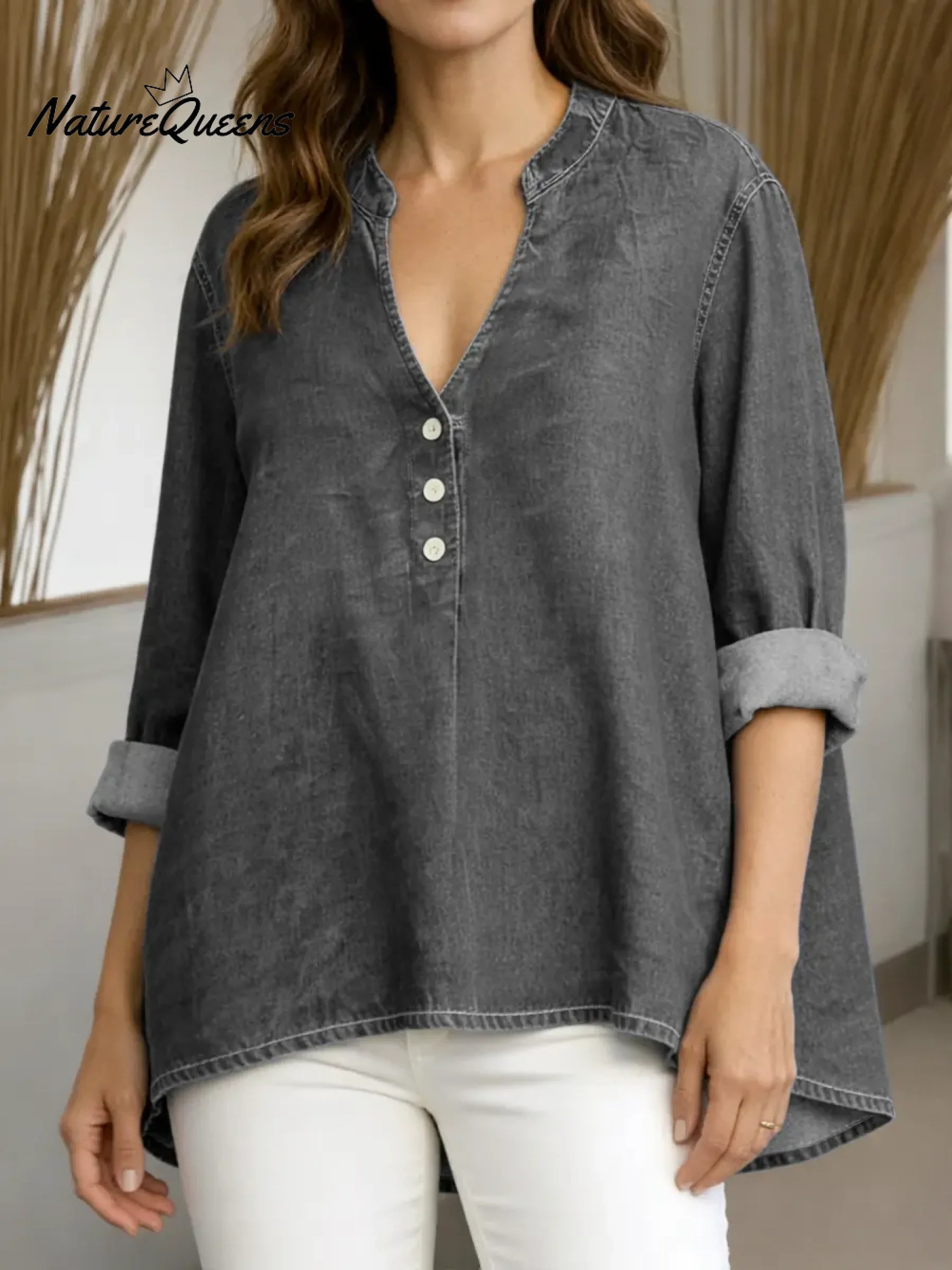 Women's V-neck Long-sleeved Casual Loose Denim Top