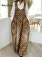 Women's Vintage Abstract Geometry Pattern Art Print Casual Cotton Denim Dress