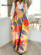 Women's Vintage Flower Pattern Art Print Casual Cotton Denim Dress