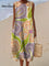 Women's Vintage Flower Pattern Art Print Casual Cotton Denim Dress