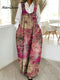 Women's Vintage Flower Pattern Art Print Casual Cotton Denim Dress