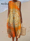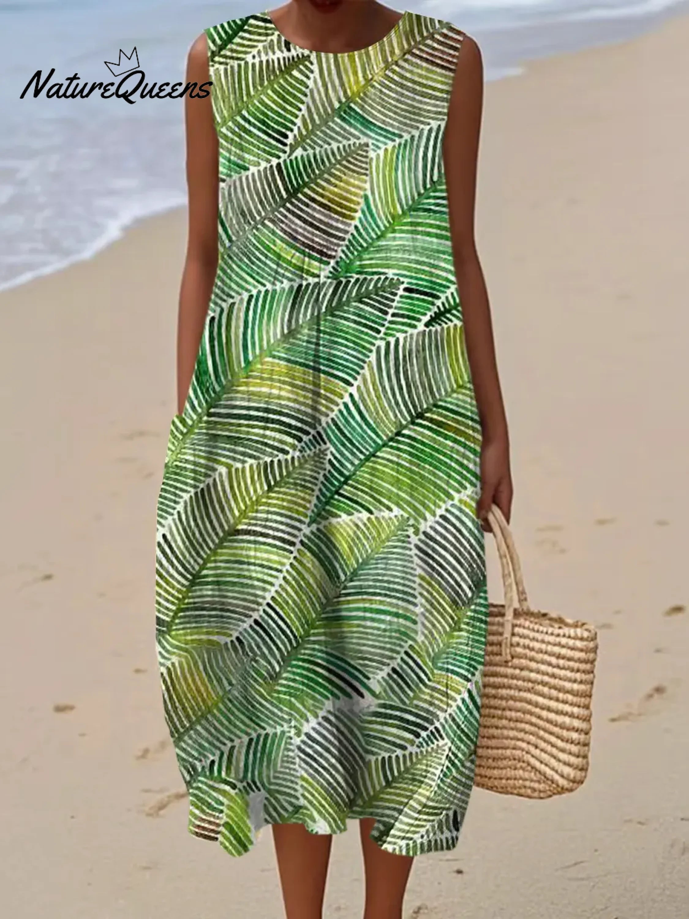 Women's Vintage Leaves Pattern Art Print Casual Cotton Denim Dress