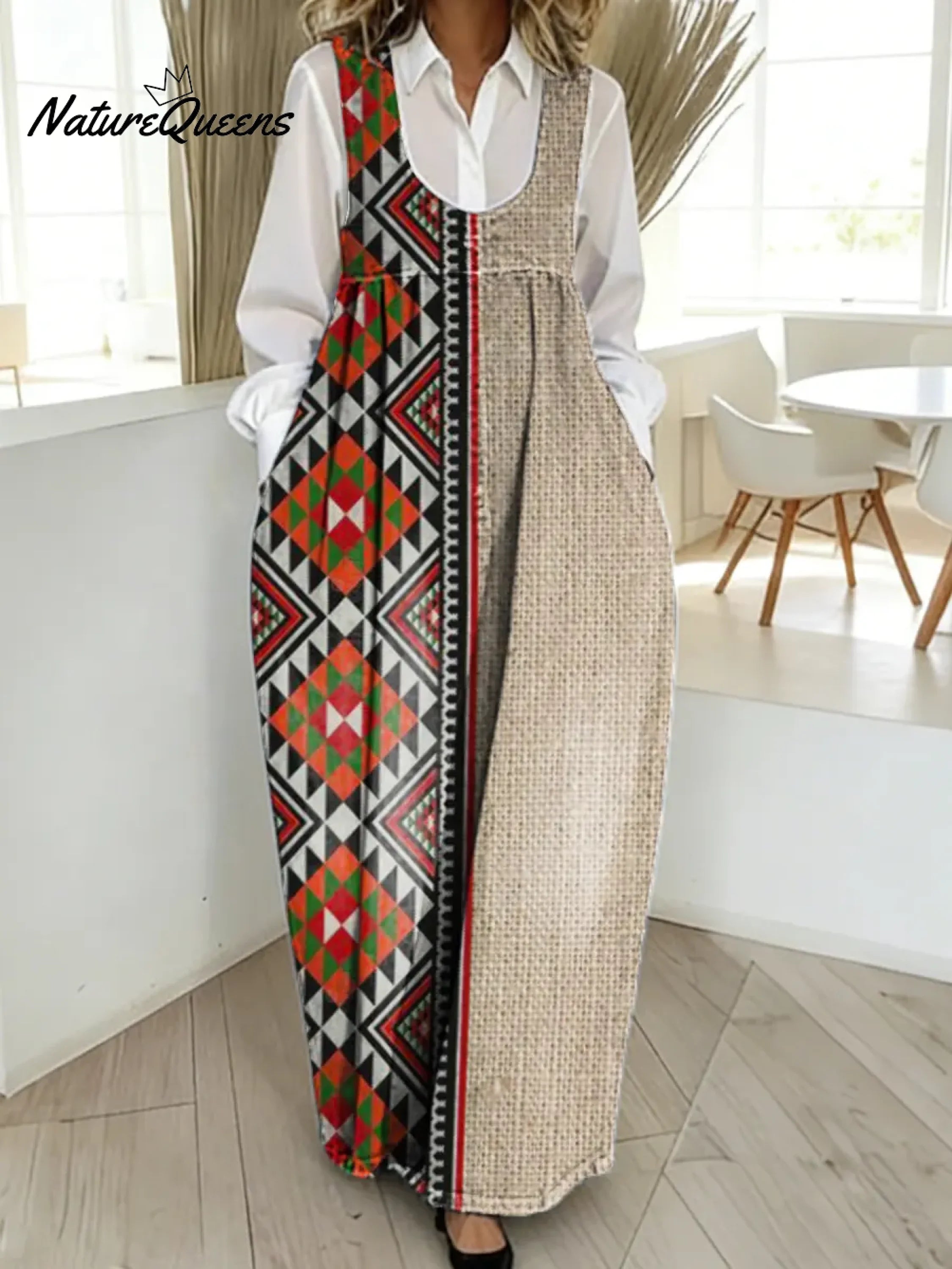 Women's Vintage Pattern Art Print Casual Cotton Denim Dress