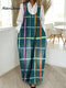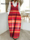 Women's Vintage Stripe Pattern Art Print Casual Cotton Denim Dress
