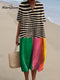 Women's Abstract Geometric Pattern Art Print Cotton Linen Pocket Tunic Dress