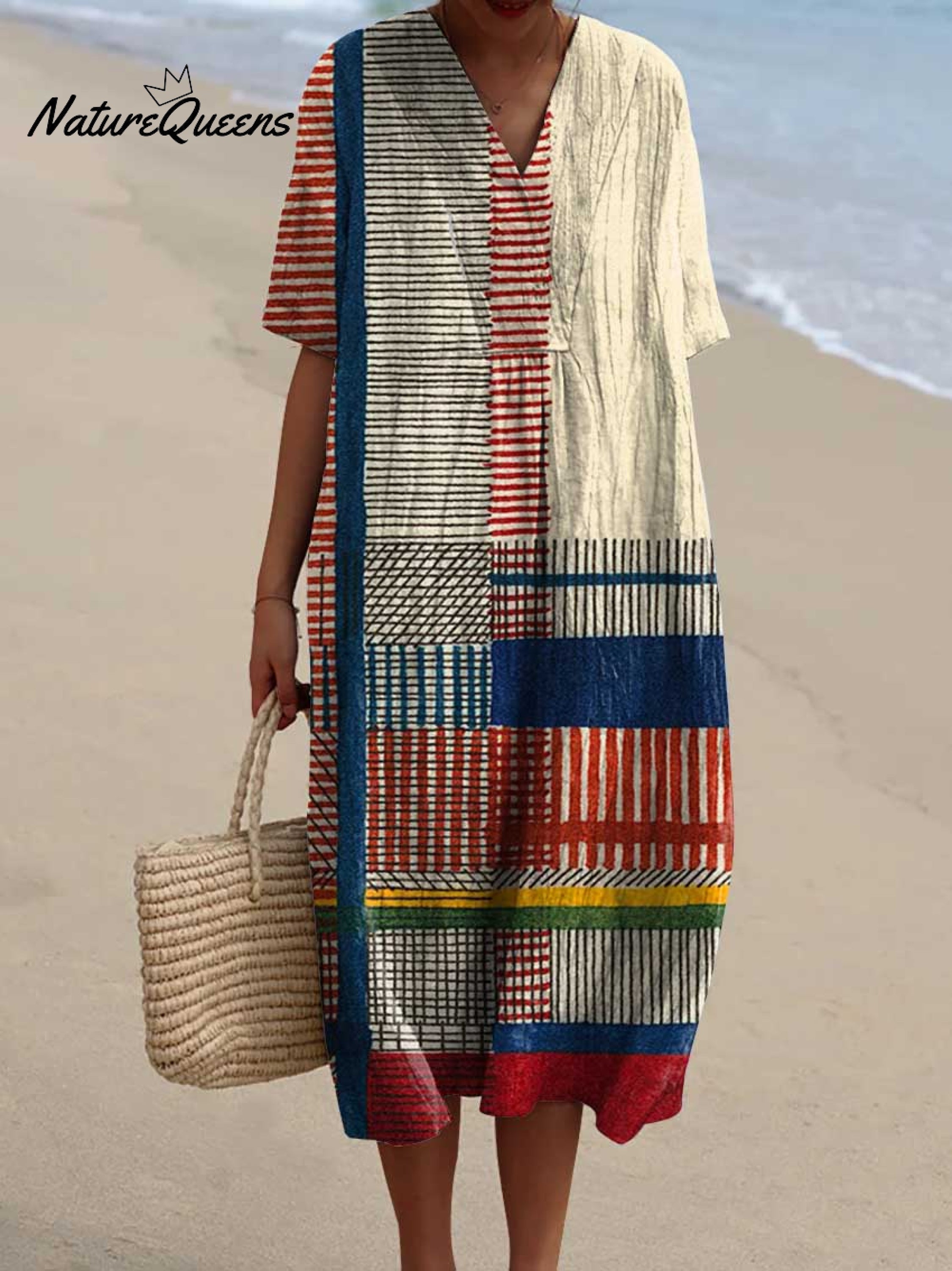 Women's Abstract Geometric Pattern Art Print Flowy Cotton Dress