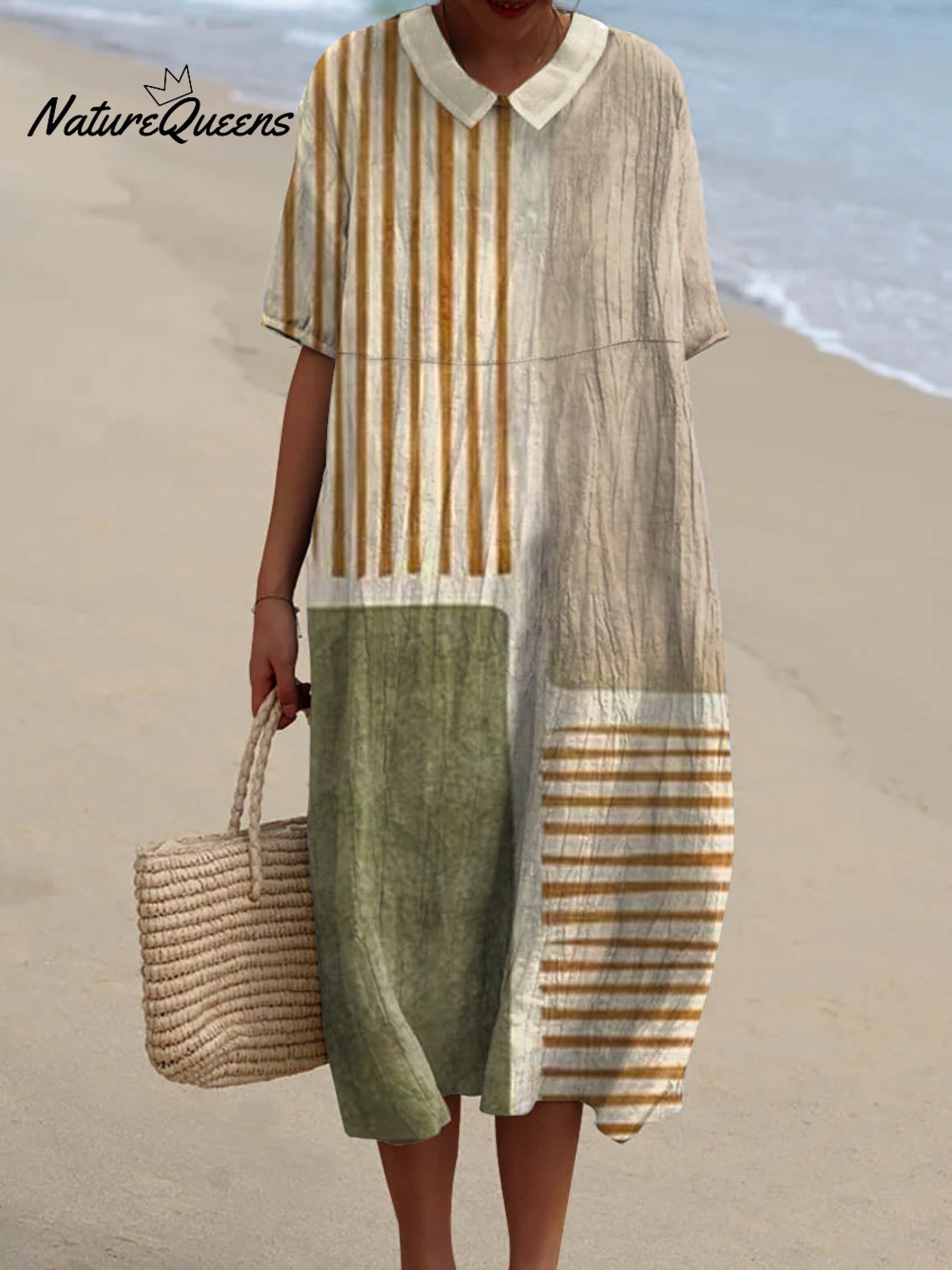 Women's Abstract Geometric Pattern Art Print Pocket Linen Dress(Convertible Dress With Front And Back Option)Women's Abstract Geometric Pattern Art Print Pocket Linen Dress(Convertible Dress With Front And Back Option)
