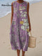 Women's Abstract Geometric Stripes Art Print Sleeveless Cotton Pocket Wrap Dress