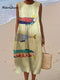 Women's Fashion Color Block Art Print Sleeveless Cotton Pocket Wrap Dress