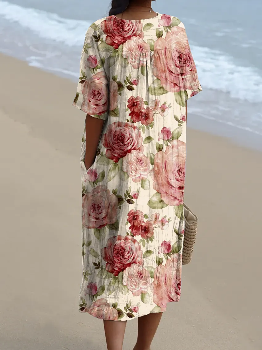Women's Floral Pattern Art Print Casual Cotton Dress
