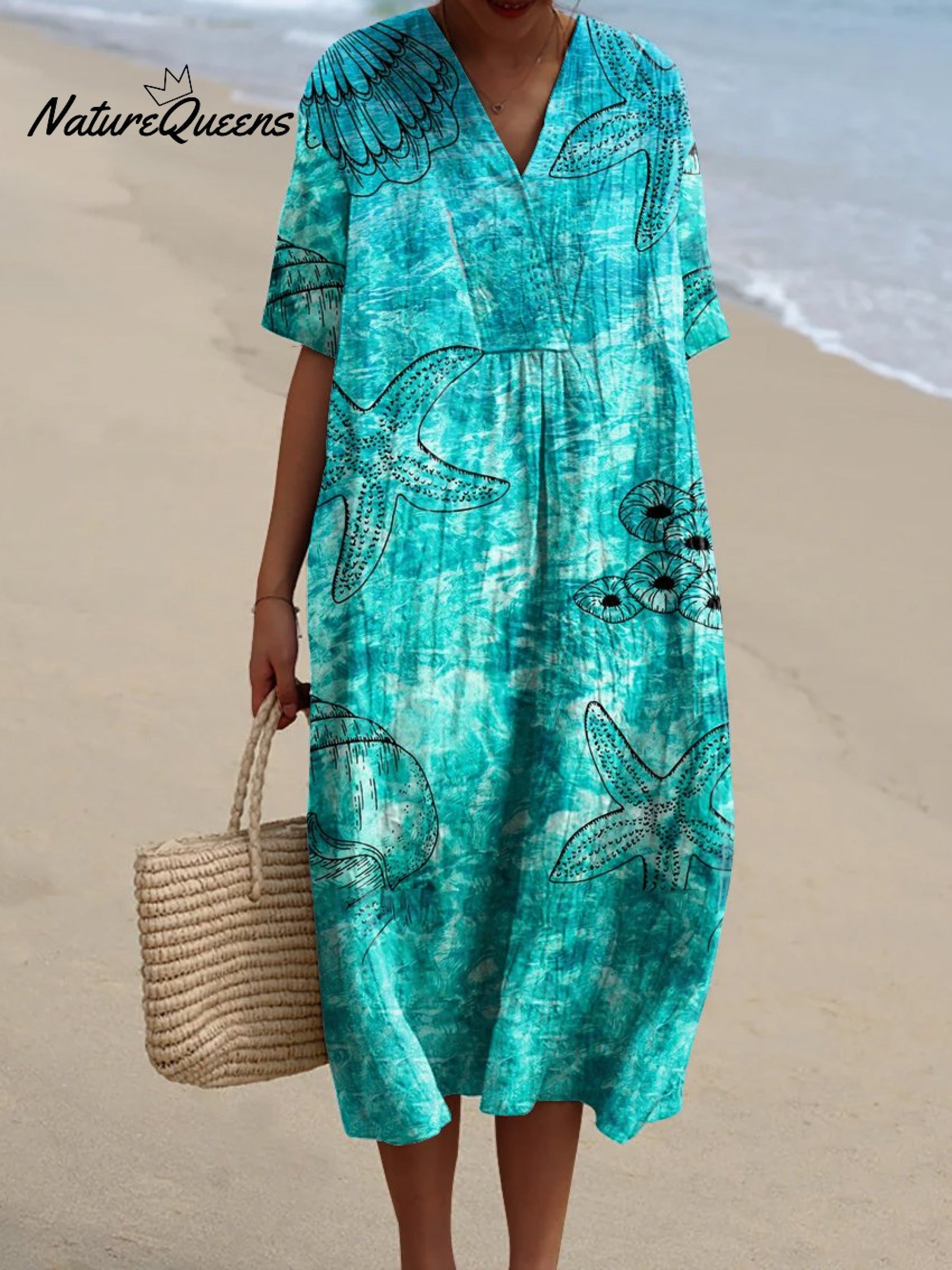 Gender: For WomenStyle: CasualFit Type:FItShirt Length: RegularSleeves Length: Short SleeveCollar: V-CollarMaterial: 100% CottonMaterial Stretch: Slight StretchPocket :side poctketWeight: 0.300kgPackage: 1 x Dress