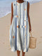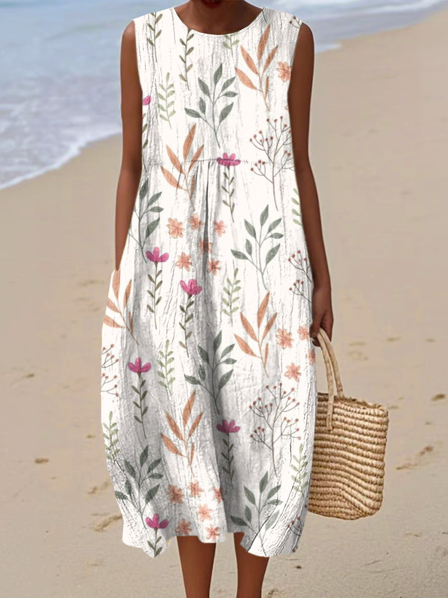 Women's Vintage Flower Art Print Sleeveless Cotton Pocket Wrap Dress