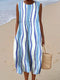 Women's Vintage Geometry Art Print Sleeveless Cotton Pocket Wrap Dress