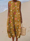 Women's Vintage Geometry Art Print Sleeveless Cotton Pocket Wrap Dress