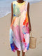 Women's Vintage Hippie Art Print Sleeveless Cotton Pocket Wrap Dress