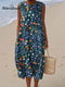Women's Vintage Octopus Art Print Sleeveless Cotton Pocket Wrap Dress