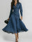 Elegant Patchwork Pleated Chiffon Denim Dress