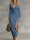 Elegant Urban-style Blue Denim Button-down Maxi Dress