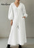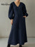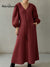 Elegant V-neck Puff Sleeve Adjustable Drawstring Linen Dress