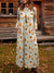 Women's Boho Boat-Shaped Collar Floral Print Stretch Dress