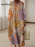 Symmetrical Artistic Patterns Print Knitted V-neck Dress