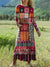 Women's Boho Vintage Flower Art Printed Long-sleeved Casual Dress
