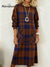 Women's Round Neck Long Sleeve Plaid Print Casual Cotton A-Line Dress