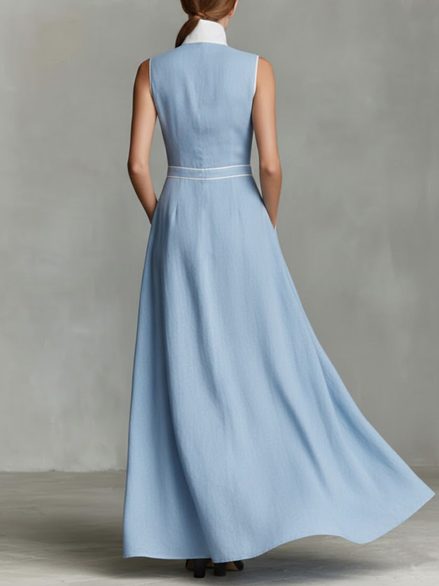 Women's Collared Sleeveless Casual Loose Long Cotton Linen Dress