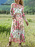 Women's Ethnic Colorful Paisley Floral Art Print Long-sleeved V-neck Dress