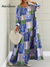 Women's Loose Floral Plaid Splicing Printed Cotton Dress