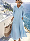 Women's Palm Tree Print Resort-style Patchwork Cotton Dress