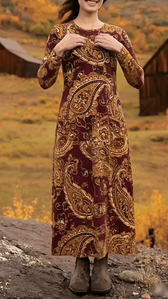 Women's Round Neck Long Sleeve Plaid Print Casual Cotton A-Line Dress