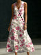 Women's Pleated Vintage Flower Patterns Print Doll Collar Casual Long-sleeved Dress